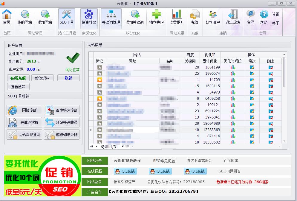 8运用云营销软件模拟点解,云营销软件是模拟人在百度检索框输入你想优化的关键词浏览你的网站,平均浏览网页量和平均浏览时间都有设置,而且IP地址都是不一样的。软件可以提升百度对网站关键词的关注度和友好度,从而使网站关键字排名迅速提升。
